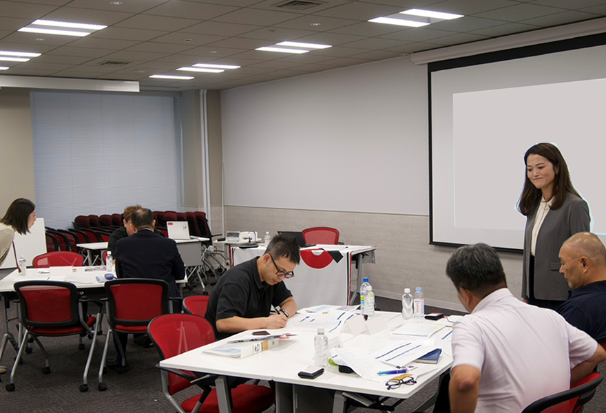 いつもの会議室を出て、大商稲穂塾コーディネーターである恩田先生の所属する御堂筋税理士法人にて、人事制度設計をさらに深掘りし、組織づくり考える「トンボ編」を行いました。株式会社あしたのチームを講師にお迎えし、中小企業での「人事評価の基本と構築のフレームワーク」をワークショップ形式で考えることができました。